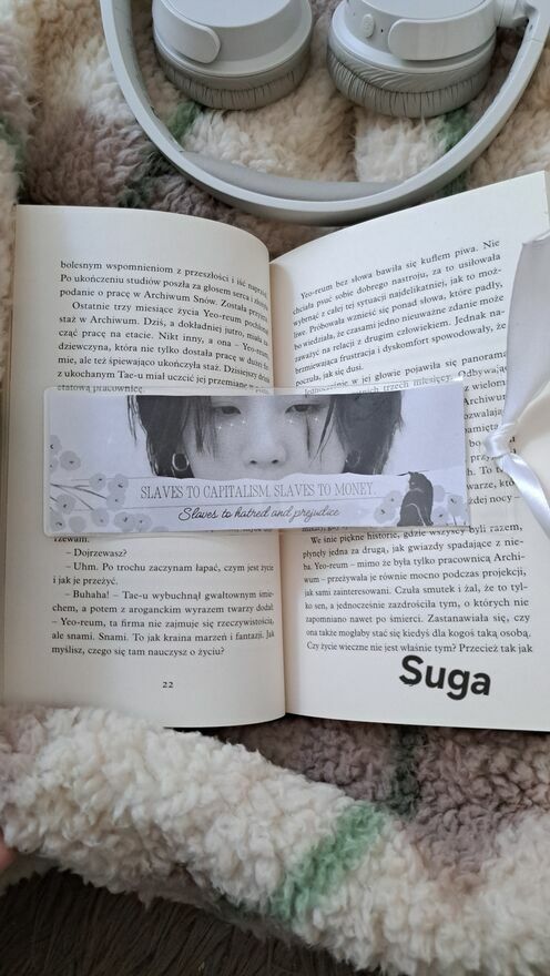 Zakładki handmade (5,6x16,7cm) z członkami zespołu BTS i tekstem ich solowych utworów. Utrzymane w delikatnej monochromatycznej stylistyce z dodatkiem białej wstążki. Idealny gadżet dla wszystkich ARMY książkoholikówSprawdź zainteresowanie tym ogłoszeniem